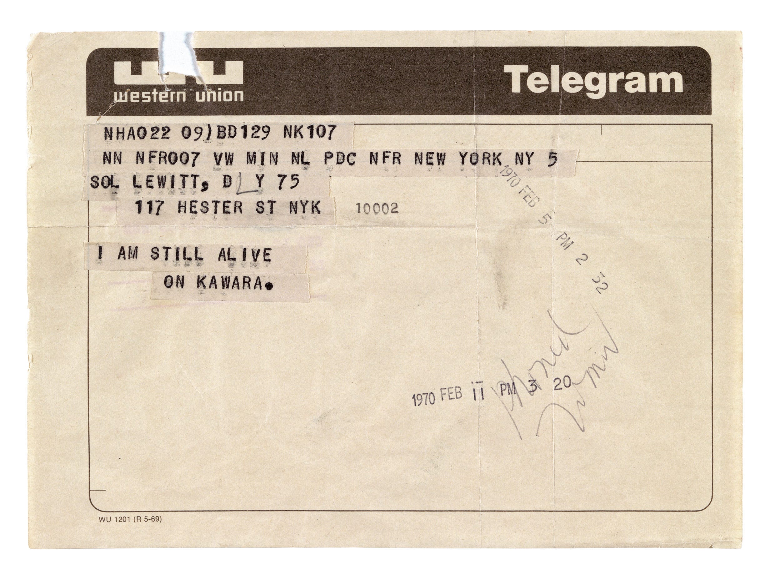 I was there, that last one is real. That coffeeshop was Verve, at 5 Chome-16-7, Minato City, about twenty-four hours ago. And now I’m drifting again, the Tokyo that really is Tokyo becoming the Tokyo that was possibly never Tokyo, or always was or will be Tokyo, in the imagination of the past that seeps into the present and the future, like spilled single-origin on a paper coaster with a squared-off stylishly accented serif font. I think On Kawara’s postcards, his telegrams that say “I AM STILL ALIVE” every single day, black books of years recorded as single lines of print until they become a heavy mass, instantiating time. For me it’s the coffeeshops.